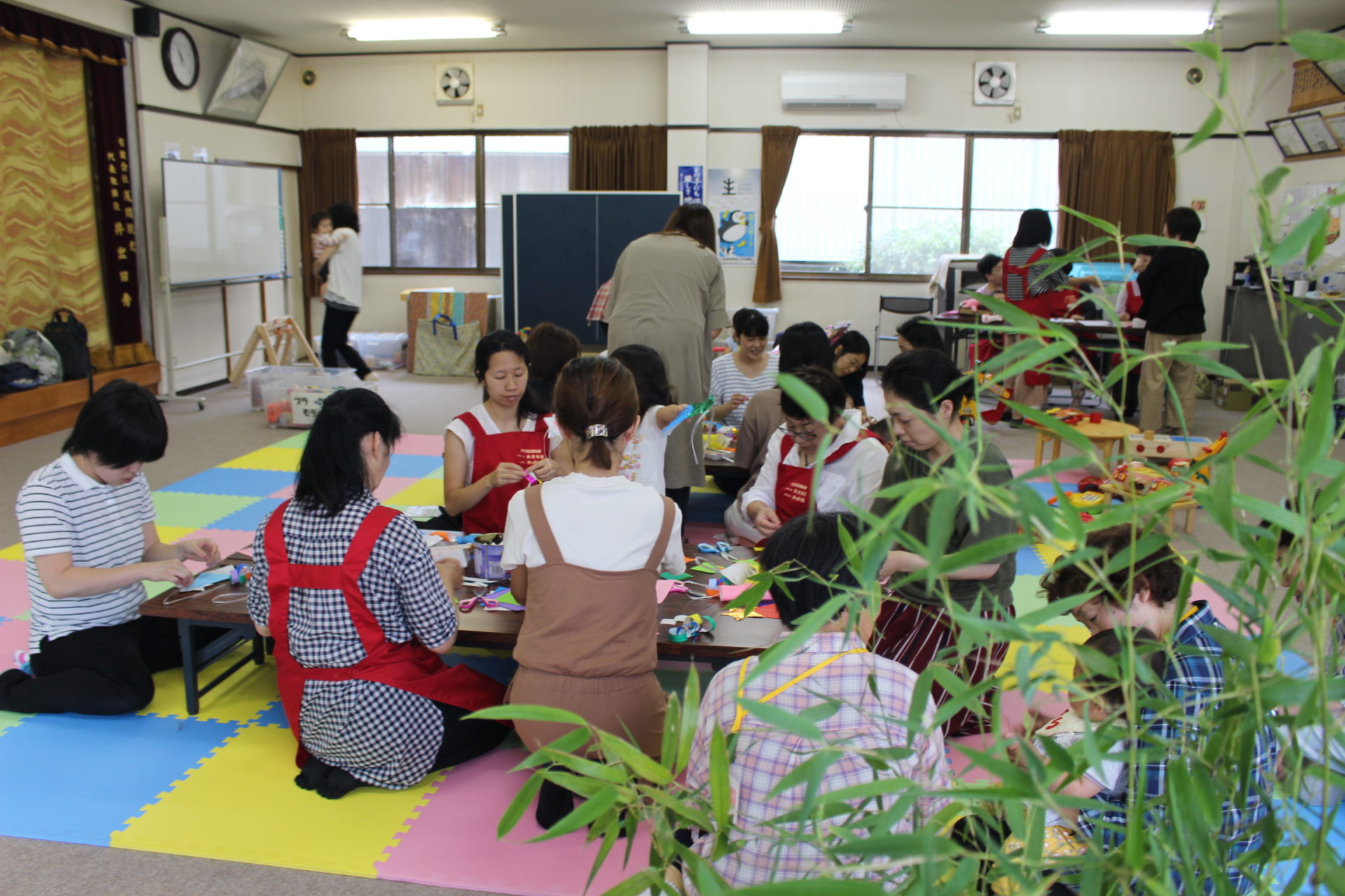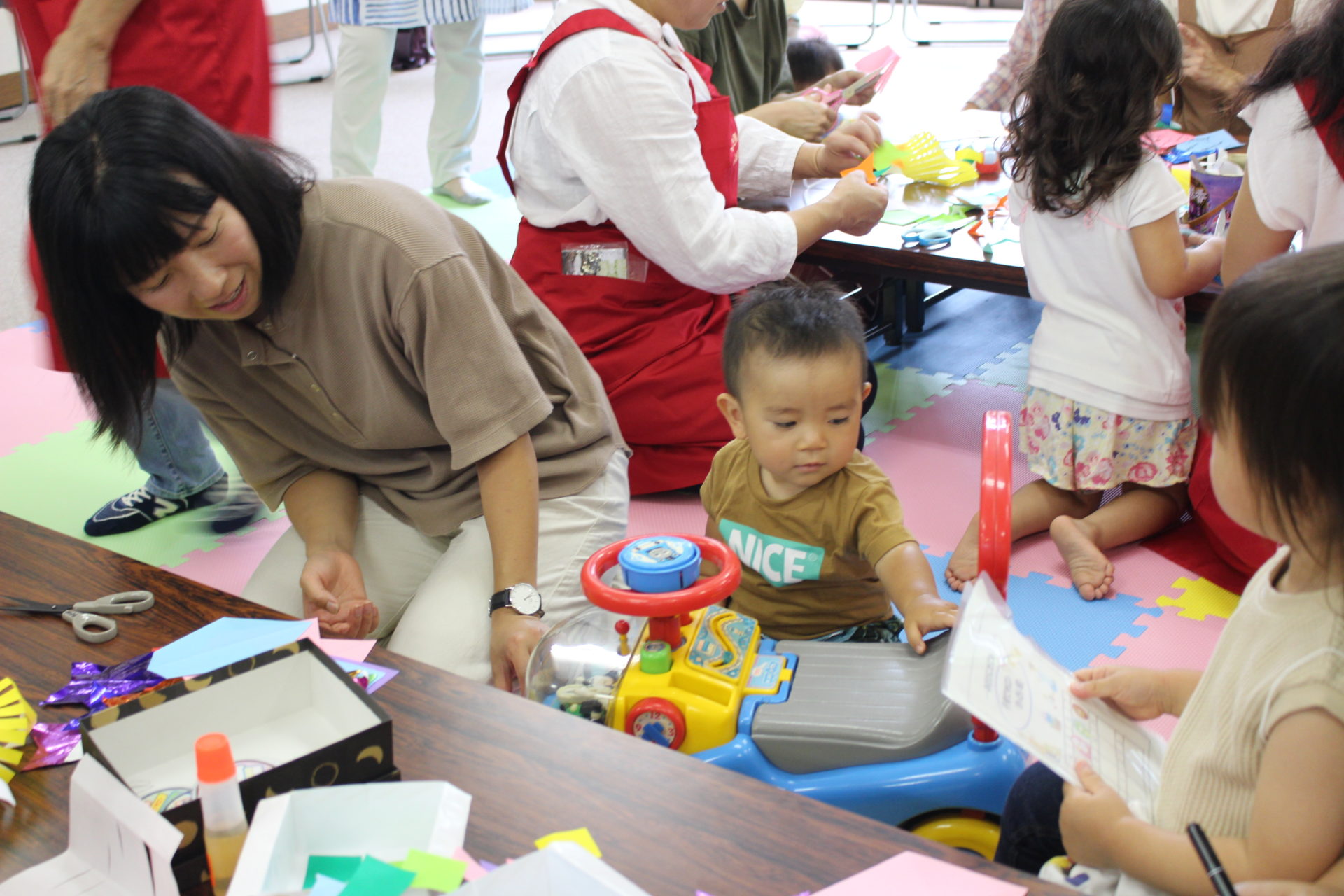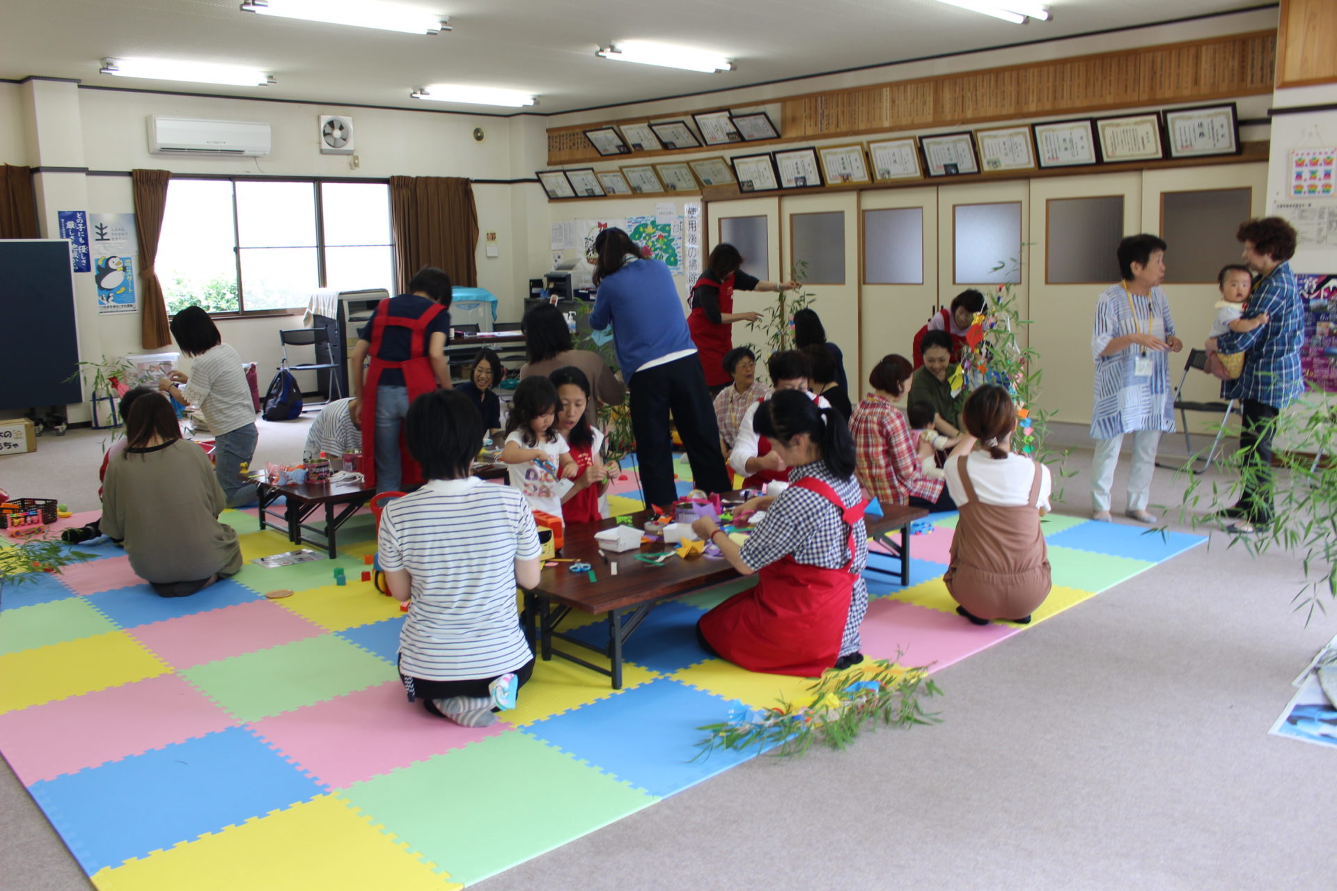 おもちゃ遊びをしたあとは、手作り工作の時間。この日は七夕飾りをつくっていました。