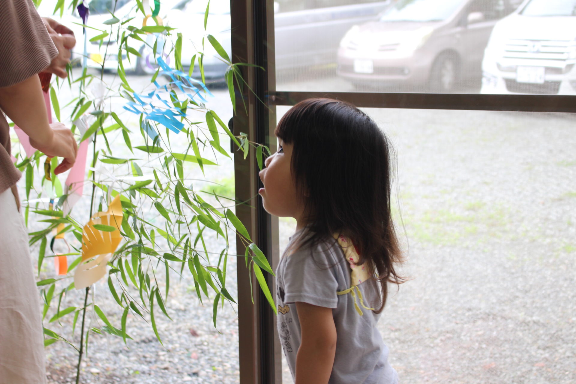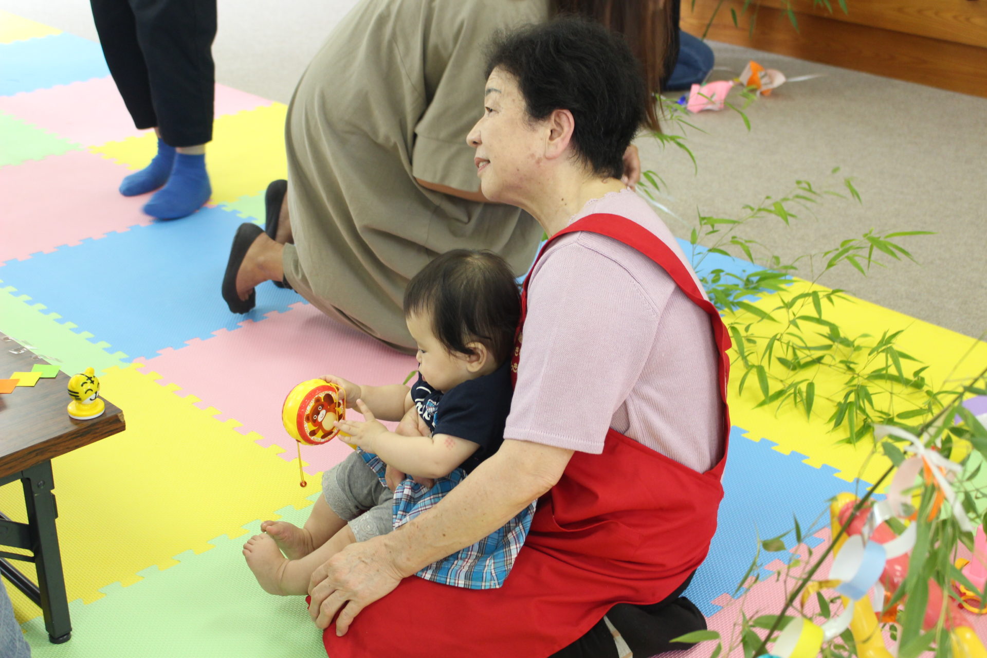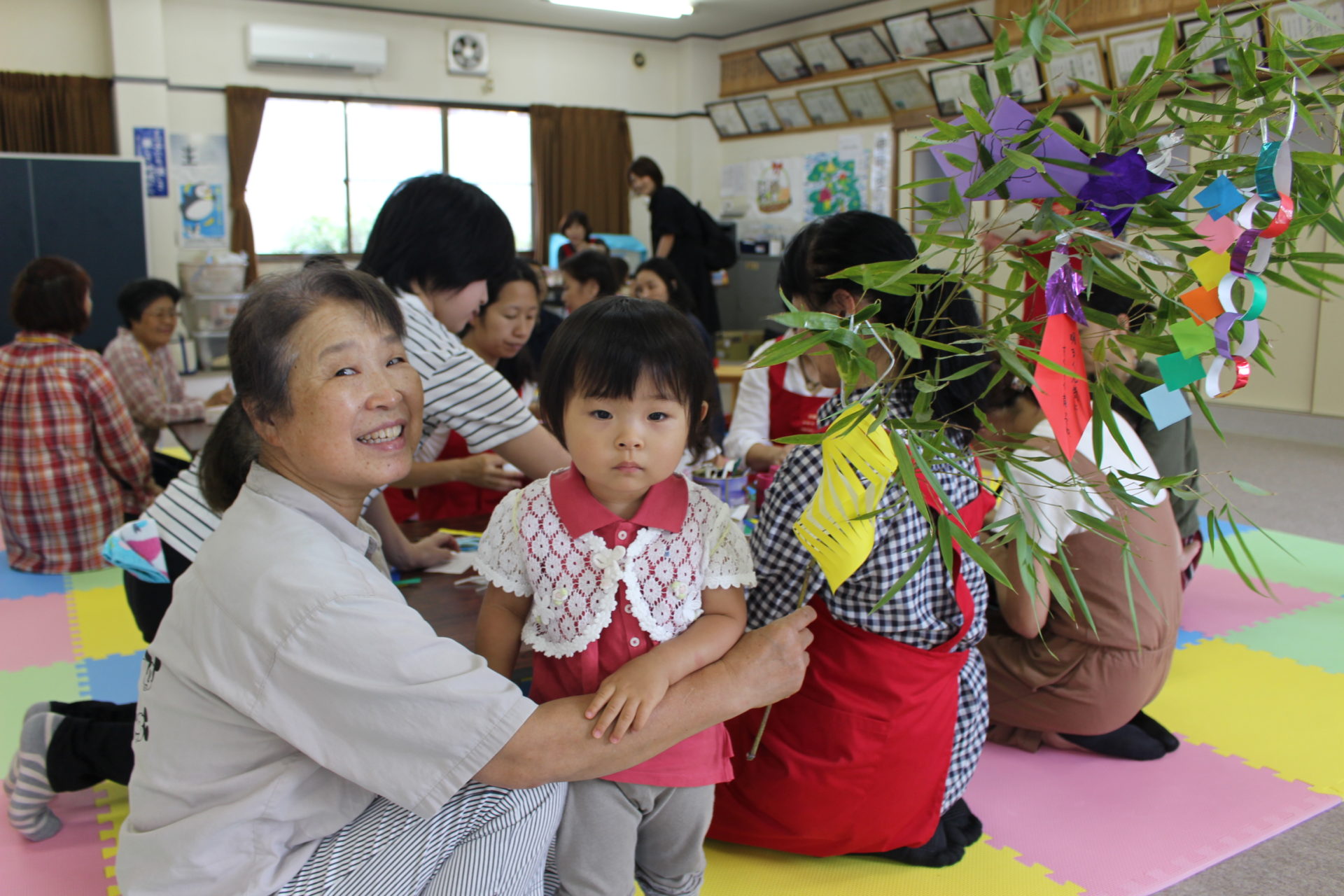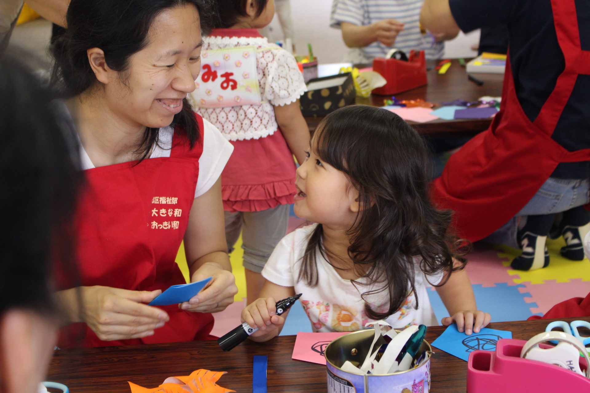 おもちゃ遊びをしたあとは、手作り工作の時間。この日は七夕飾りをつくっていました。