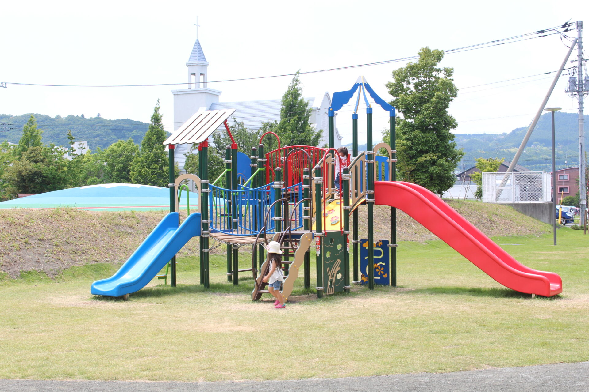 総合遊具は小学生には少し物足りないかな?と思いましたが、我が家の小学生はブランコ大好き!なので、幼稚園児の三女と小学生でも楽しめる公園です。