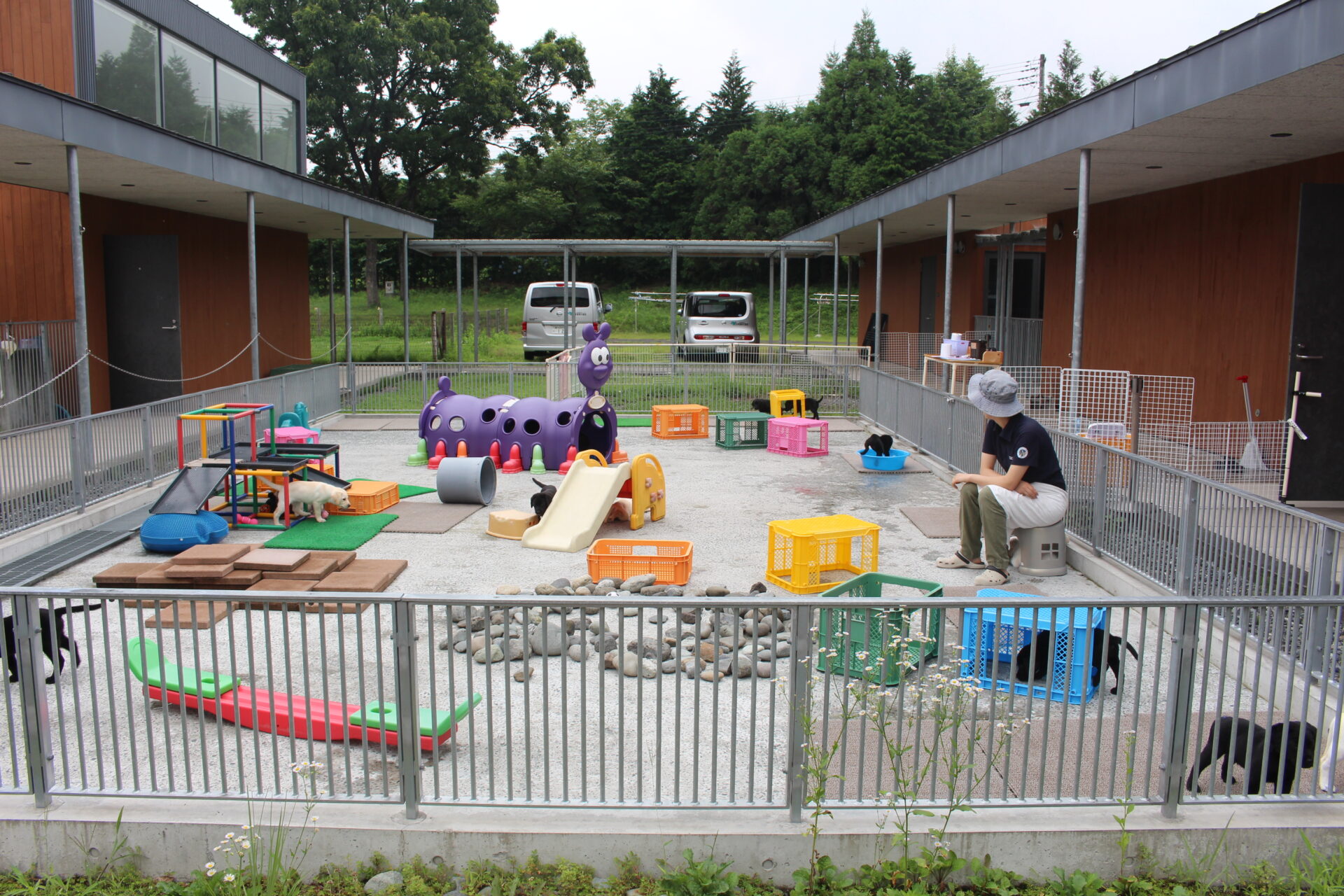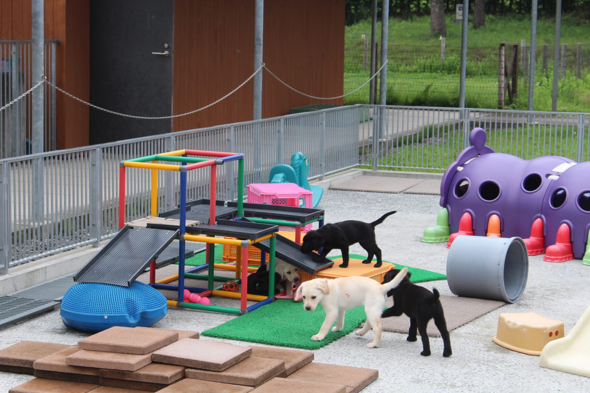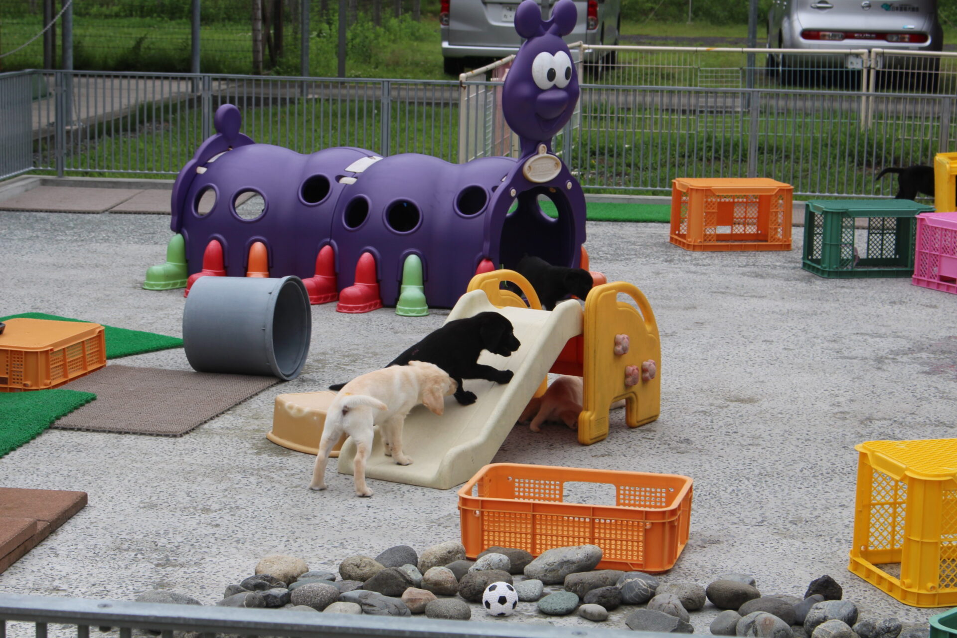 盲導犬候補として生まれた犬たちは、生後2か月くらいまではこちらの施設で母犬や兄弟姉妹たちと一緒に暮らし、2か月~1歳くらいまで「パピーウォーカー」というボランティアの家庭で育ててもらいます。その後、富士ハーネスに戻り盲導犬としての訓練がはじまります。