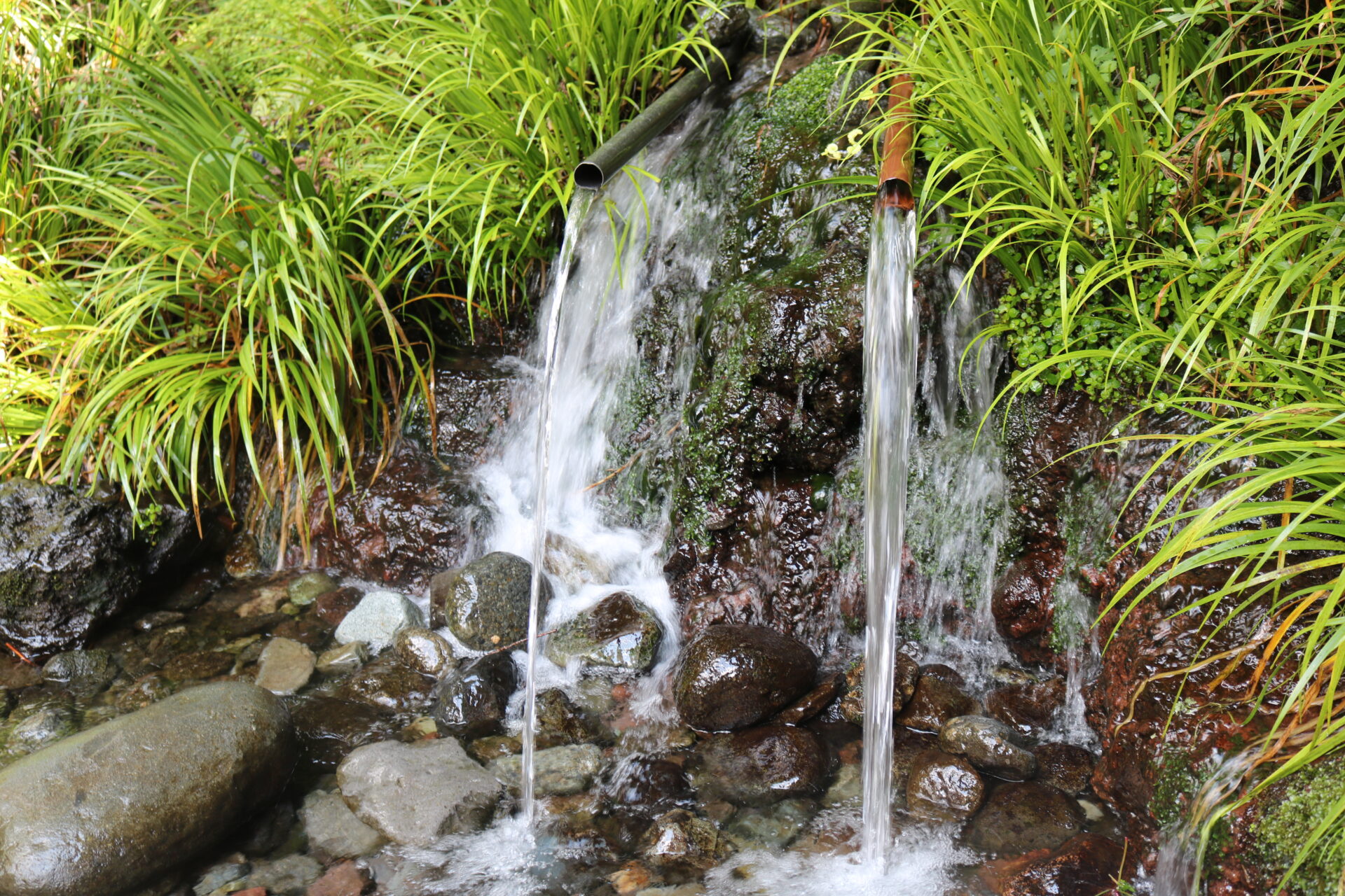 滝の水はもちろんのこと、湧水があり、タンクやペットボトルに水を汲んで持ち帰ることができます。