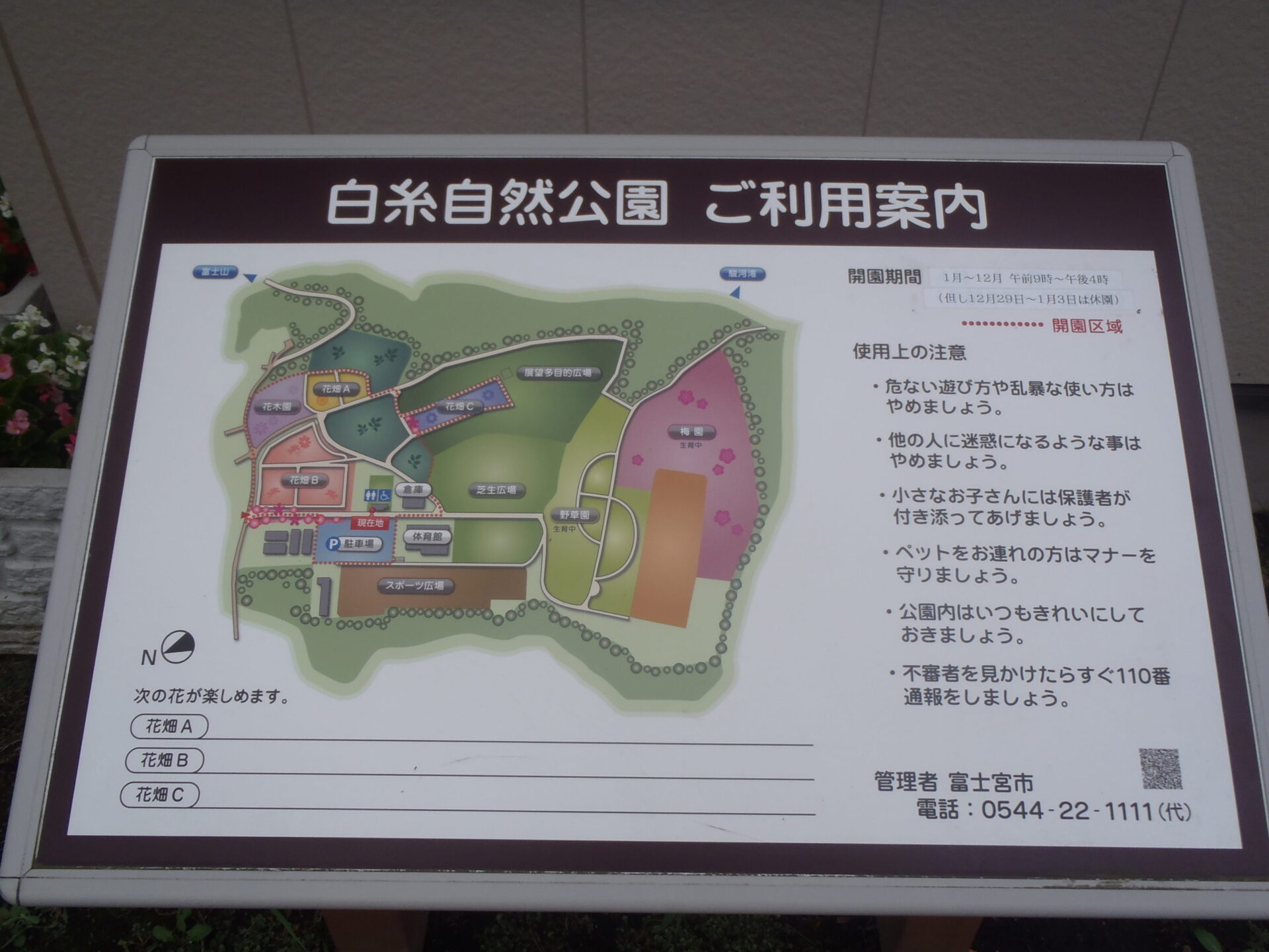 ★花畑散策の際、休憩所はありますが、それ以外には木陰はありません。天候に合わせて帽子や日傘などを持参した方がいいと思います。(遊具の広場に木陰とベンチ、屋内施設は体育館があるのでそちらに移動することは可能です。)