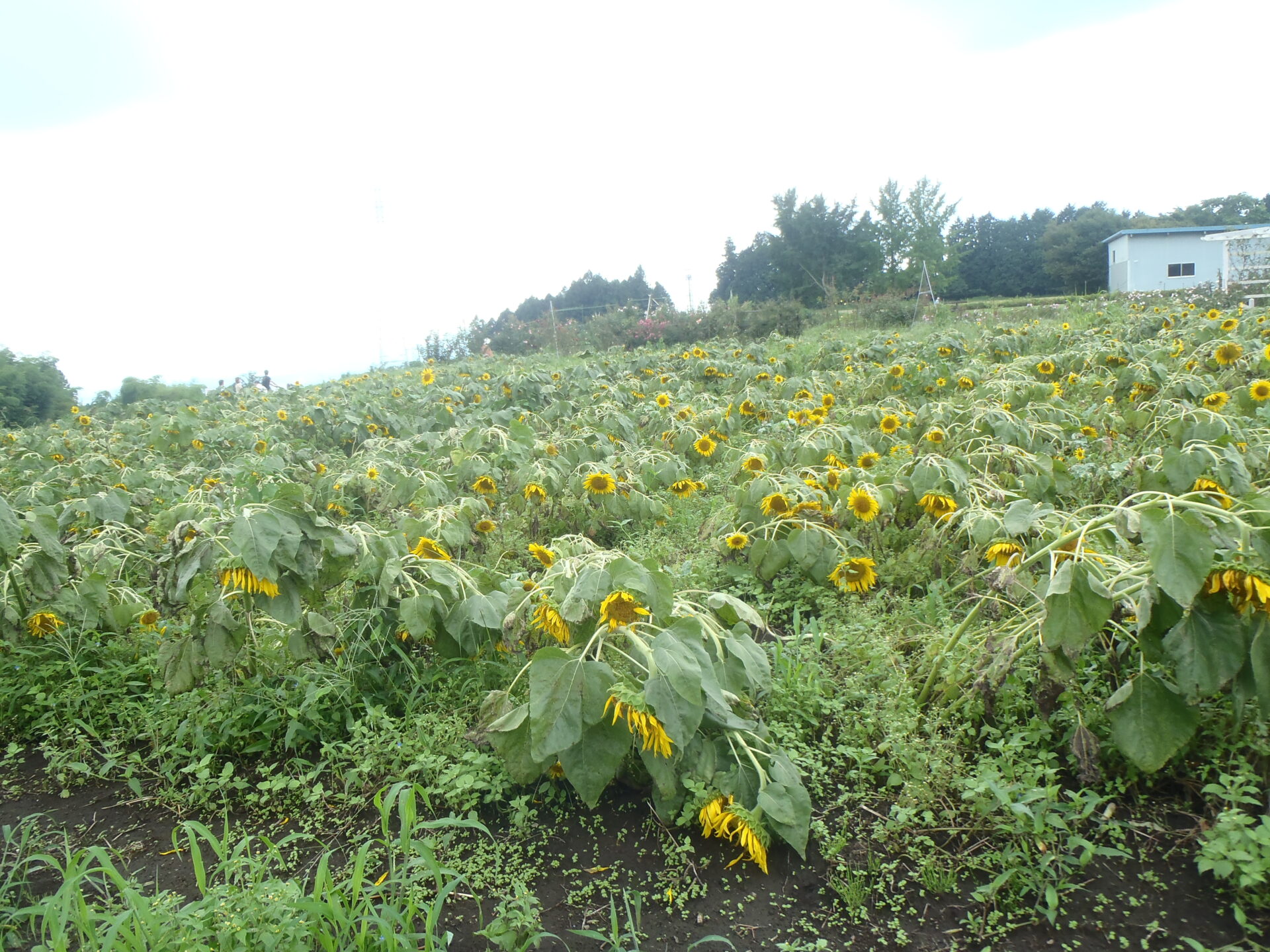 なんと、台風の影響でひまわりは倒れてしまっていたのでした・・・。