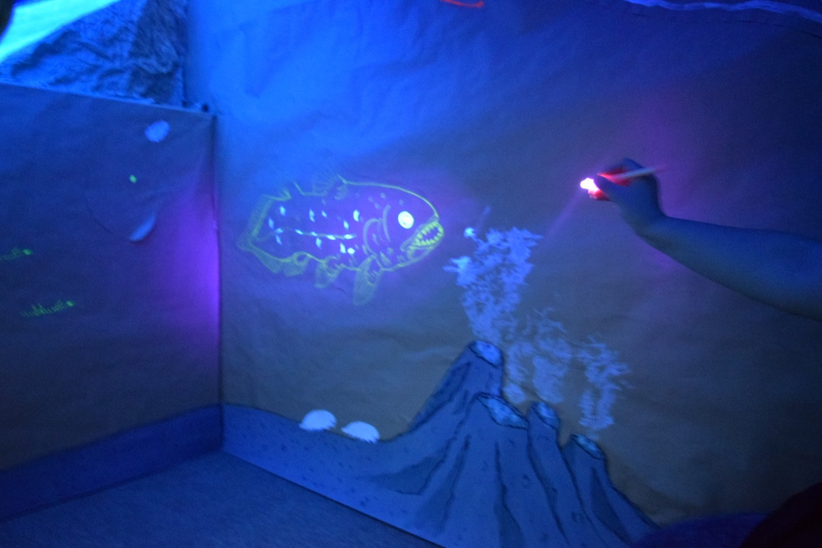 ペンライトで魚たちが浮き上がるゾーンに子どもは夢中で、なかなかトンネルから出てきませんでした(笑)