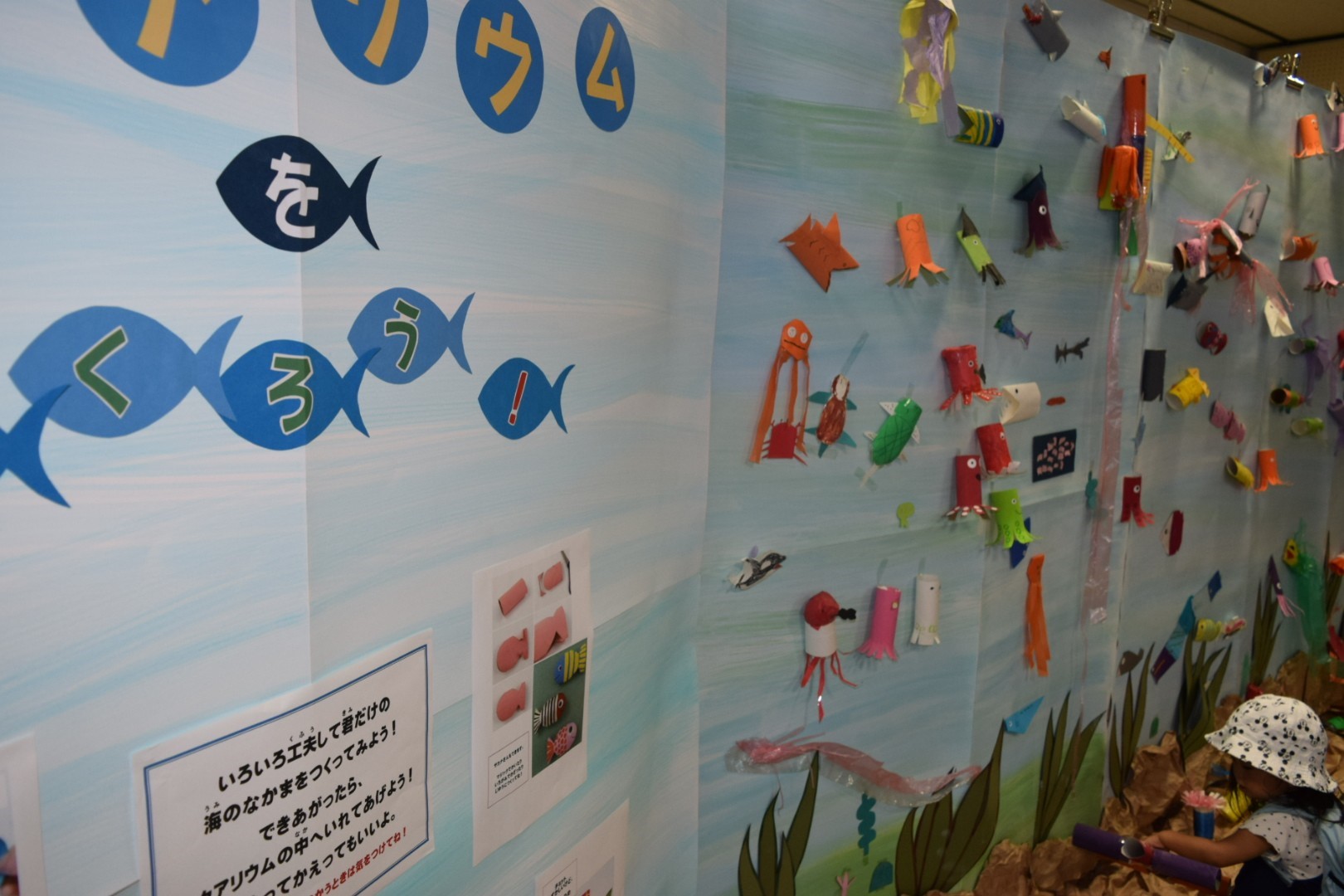 他にも工作コーナーで海の仲間を作って飾ったり、毎週変わるクイズラリーに挑戦したり。