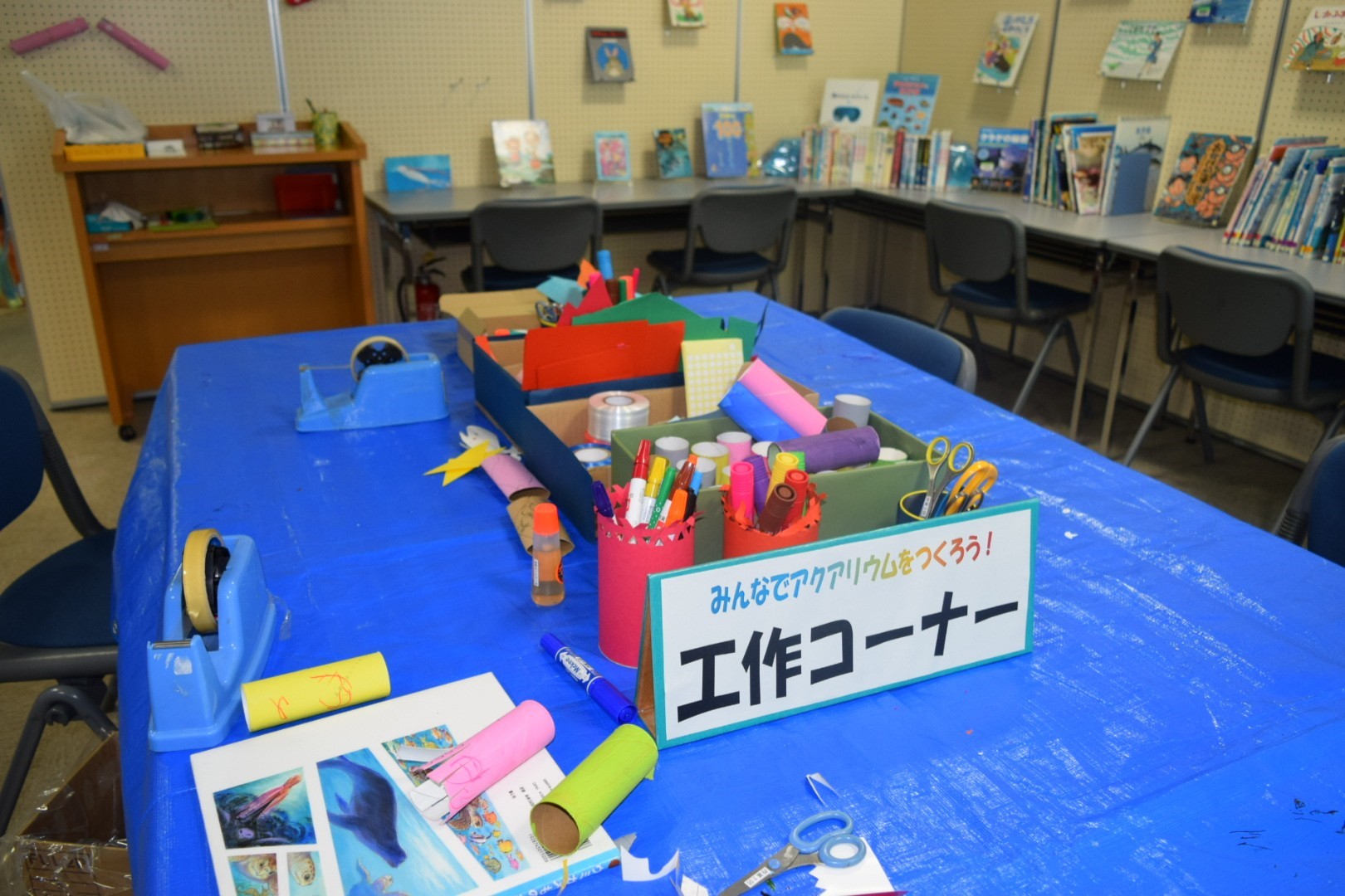 土曜日は15時から海がテーマの読み聞かせや大型紙芝居があるので多くの子どもが楽しめそうですね。