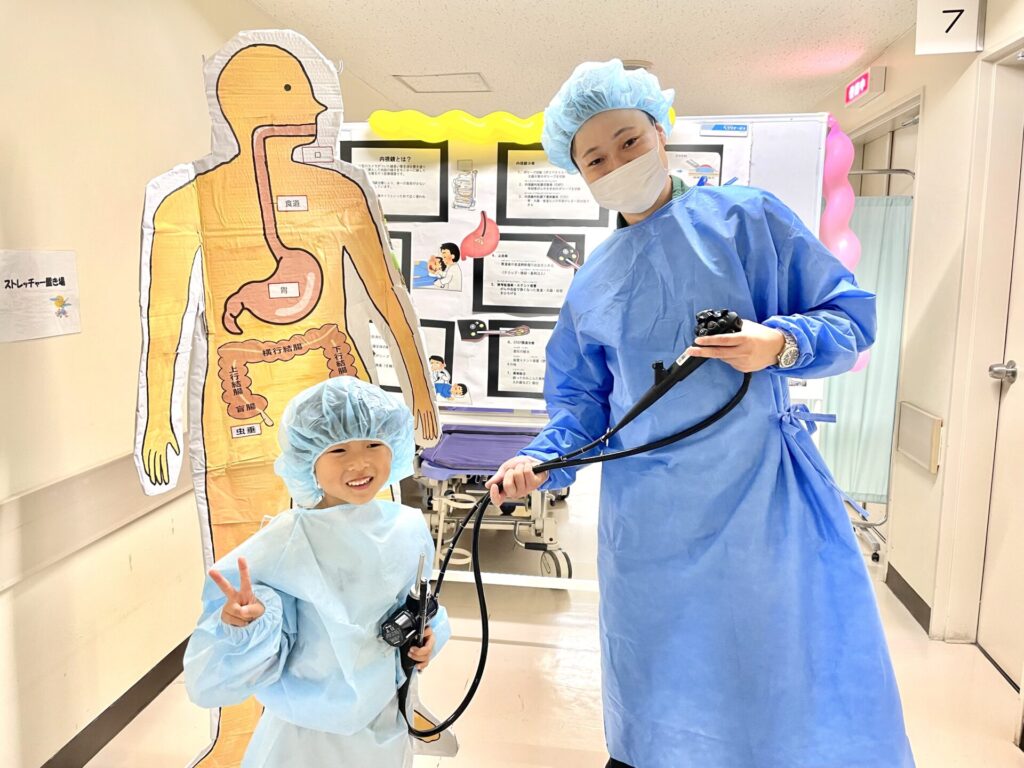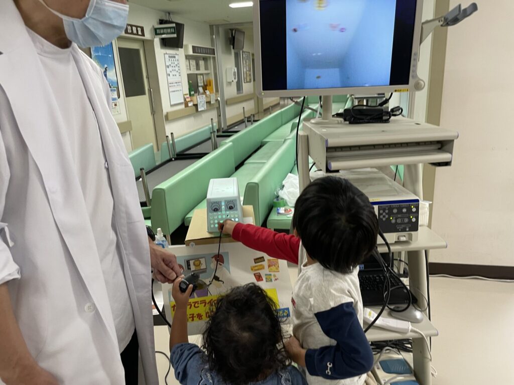 子どもたちはちょっとしたゲーム感覚で内視鏡に実際に触れられ、楽しんでいました。