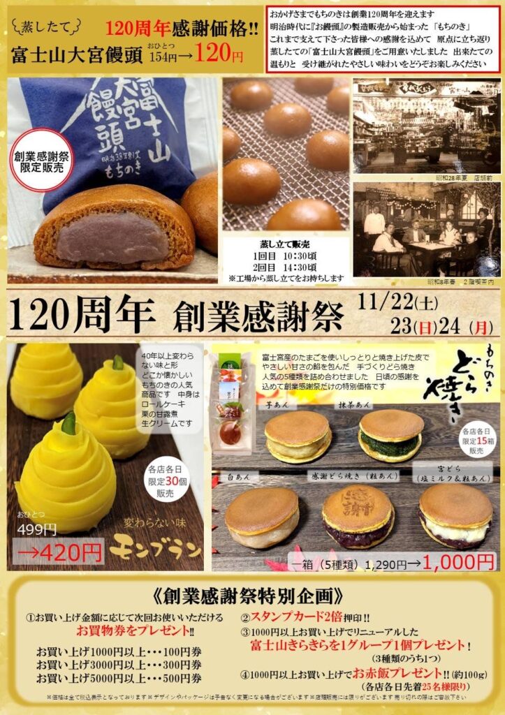 【11月22~24日】創業120周年!老舗和洋菓子店「もちのき」が創業感謝祭を開催