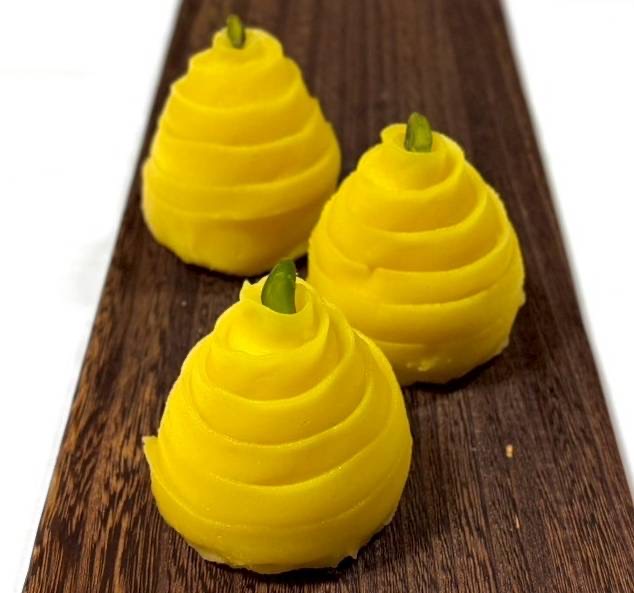富士宮産の卵を使った黄身あん(黄金ふじ)、静岡産いちごのピューレを練り込んだいちごあん(赤富士)、静岡のお茶を粉末にした緑茶あん(碧(あお)富士)と、どれも富士山をイメージ。