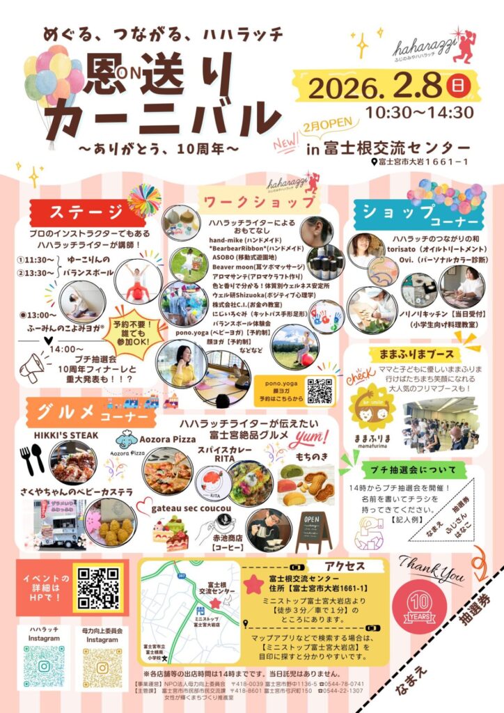 また、ハハラッチ10周年イベントともあり、「恩送りカーニバル」では、プチ抽選会を開催します!