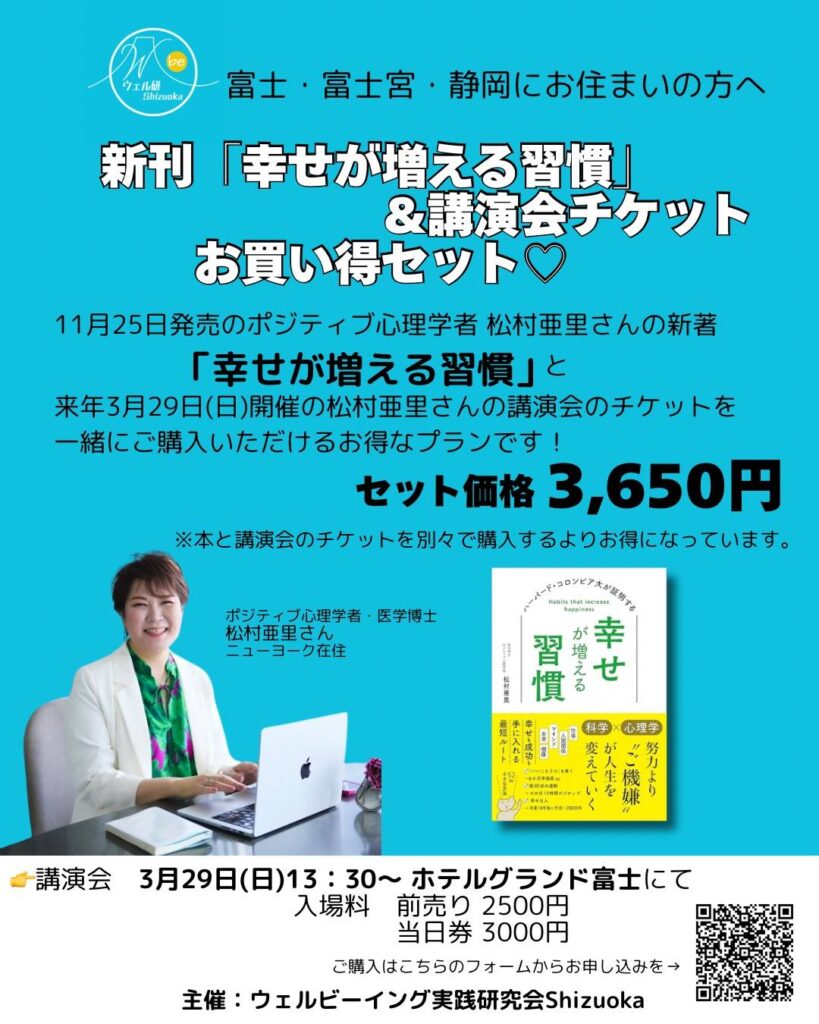 今回は、そのうち2人のメンバーが松村亜里新刊販売及び講演会チケット販売、ポジティブ心理学を活かした子育てや幸せな人生の生き方などお話会を行います♪