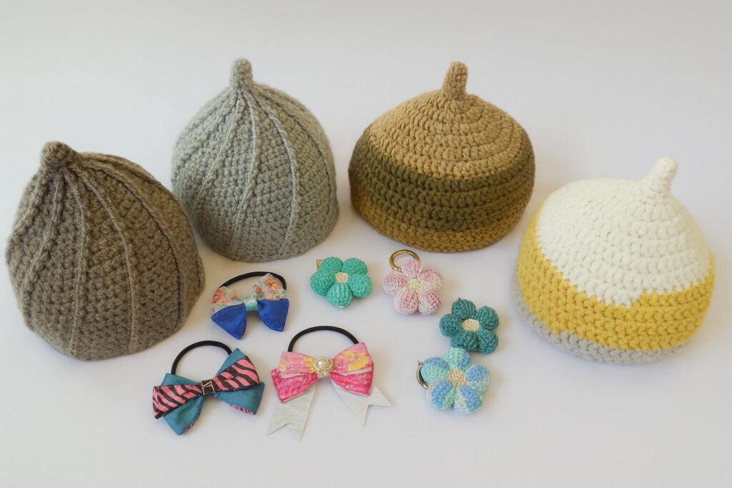 どんぐり帽子やお花のキーホルダー、カラフルなヘアリボンなど、親子で楽しめる世界に1つだけのハンドメイド作品を販売しています。プレゼントにもおすすめです♡