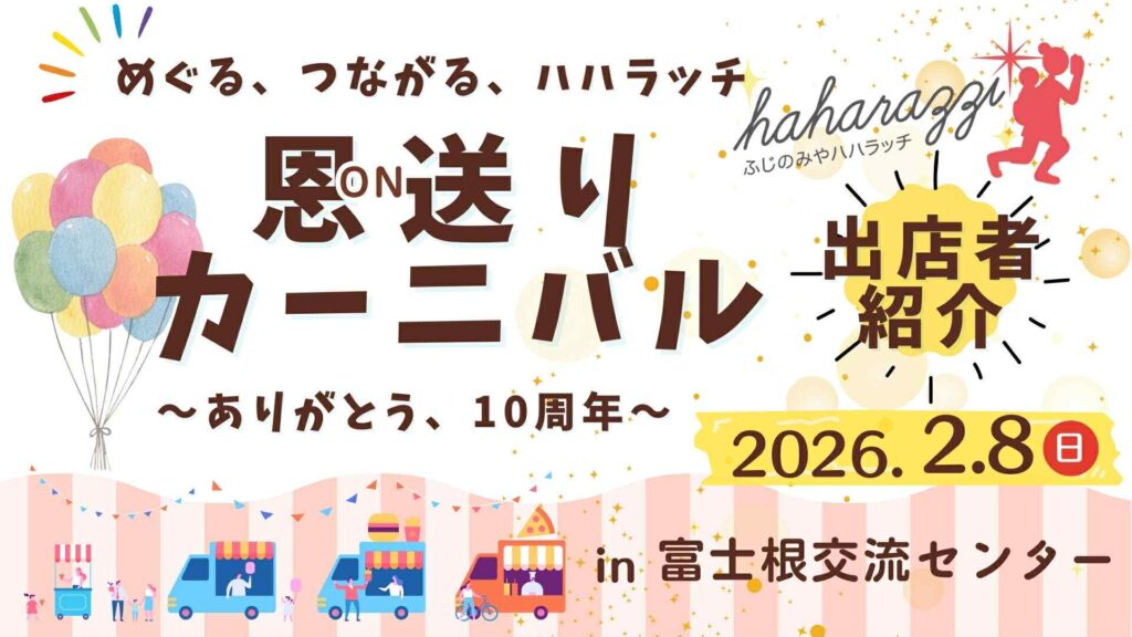 ハハラッチ10周年イベントともあり、「恩送りカーニバル」では、プチ抽選会を開催します!
