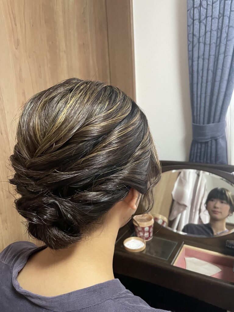 経験豊富な屋比久さん、ヘアーセットの手際よく、楽しくお話をしている間にあっという間に完成していました。
