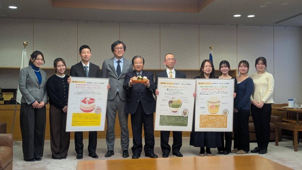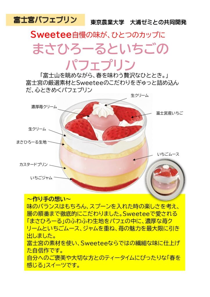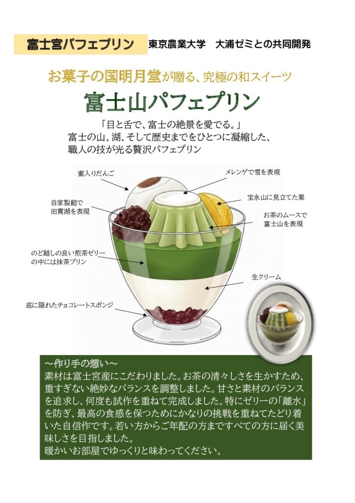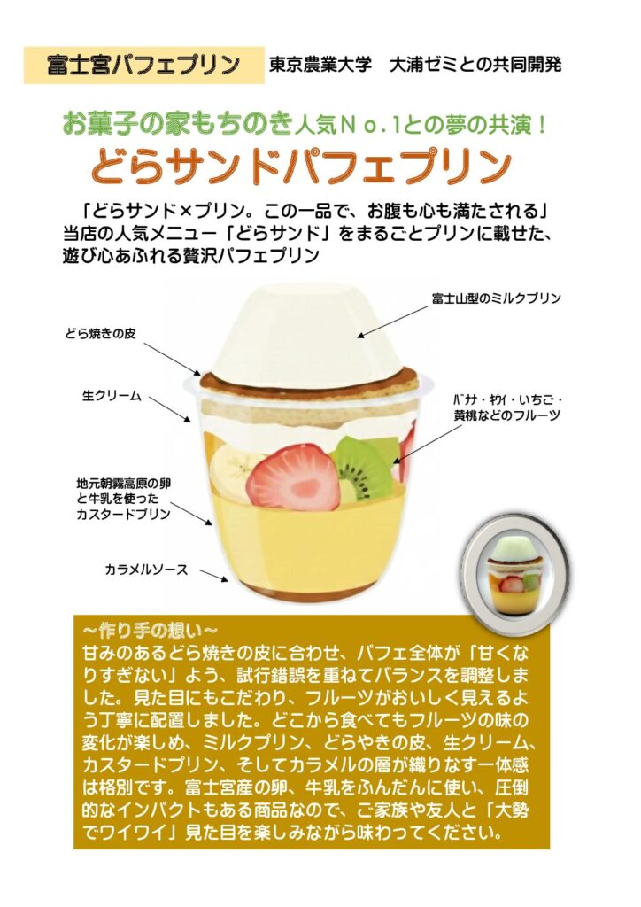 今回のプリンまつりでは、東京農業大学の大学生と市内の菓子店のコラボ企画「富士宮パフェプリン」が販売されます。