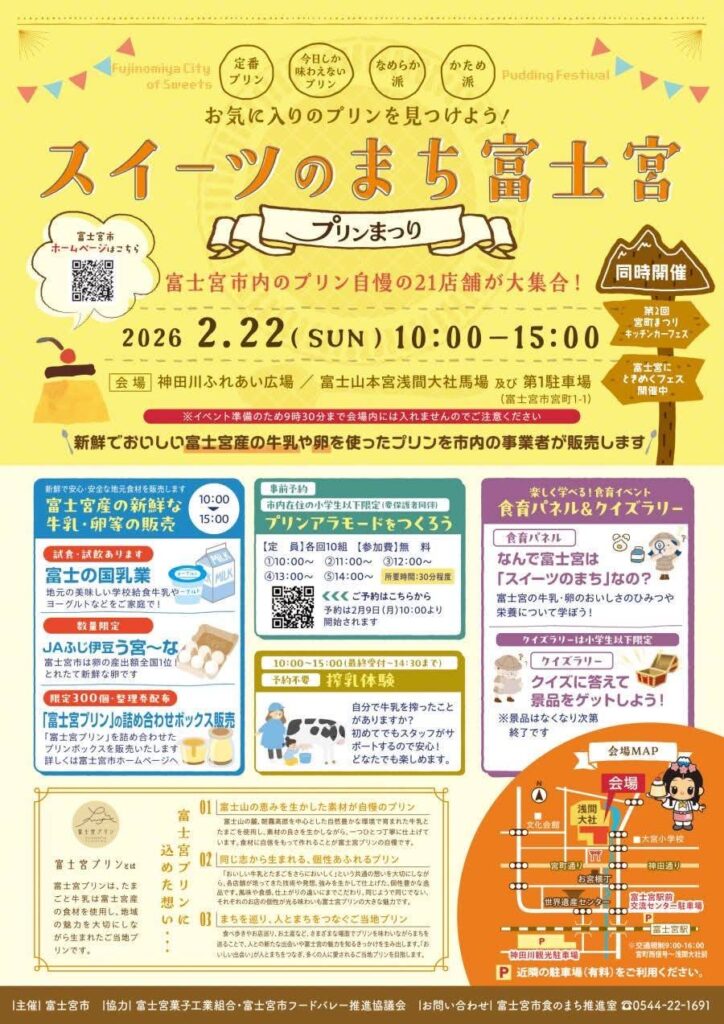 富士宮産の牛乳・たまごをたっぷり使ったプリンをこころゆくまで楽しめるイベント、「ふじのみやプリンまつり」が今年も開催されます❁