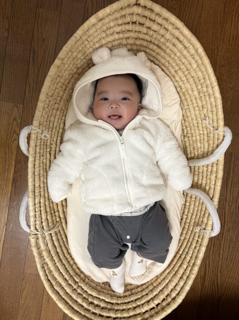 生後3か月だけどビックボーイの息子は、クーファンに入るギリギリサイズ。自宅にはクーファンがないので、これも記念になるな~!と楽しんで写真を撮りました♪