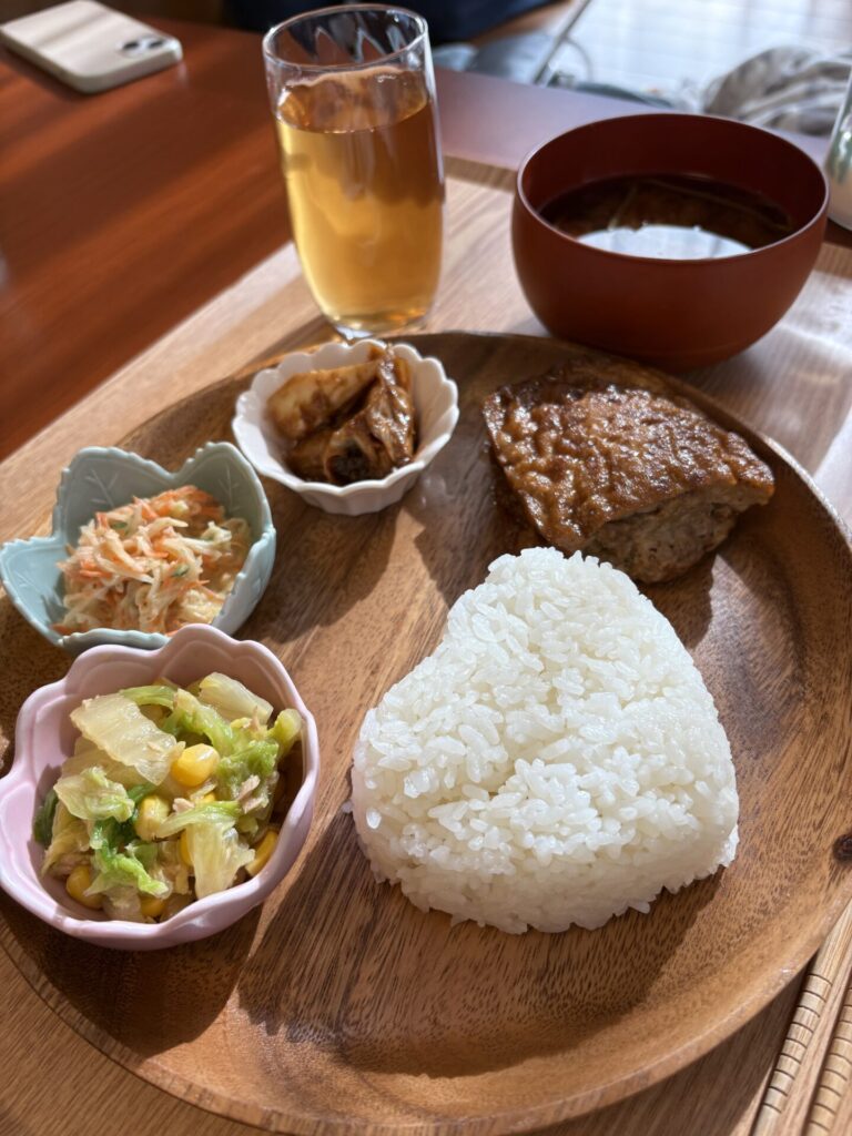 お昼ご飯は、産後のママの身体をいたわり、栄養バランスのとれたお惣菜を用意していただけます。私はモリモリおかわりしました!