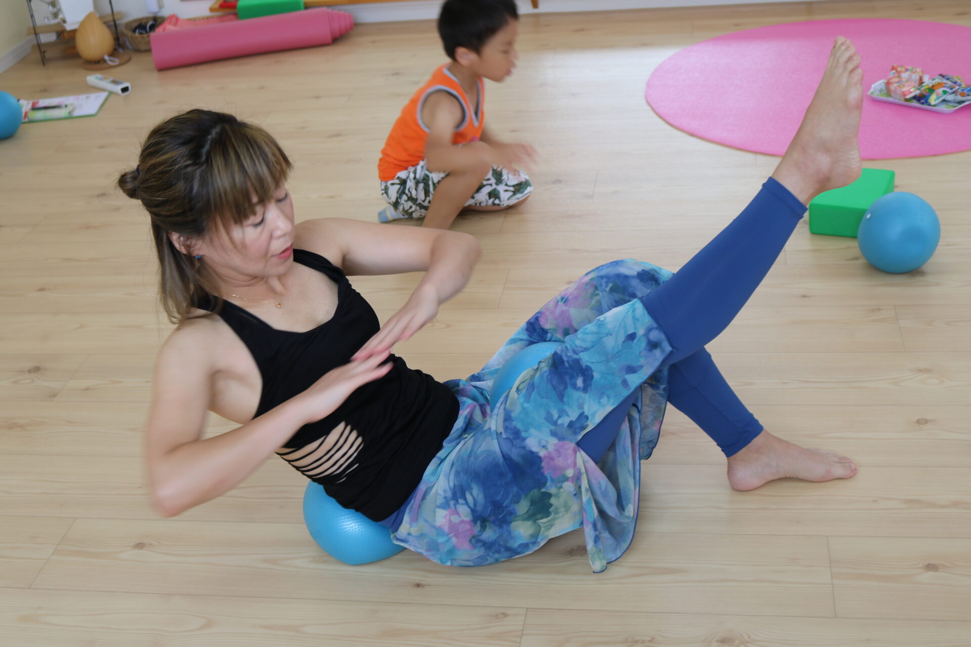 ヨガトレの担当となるTOMO先生はベビーヨガ・ベビーマッサージを勉強され、一昨年第一子を出産されたとのこと。