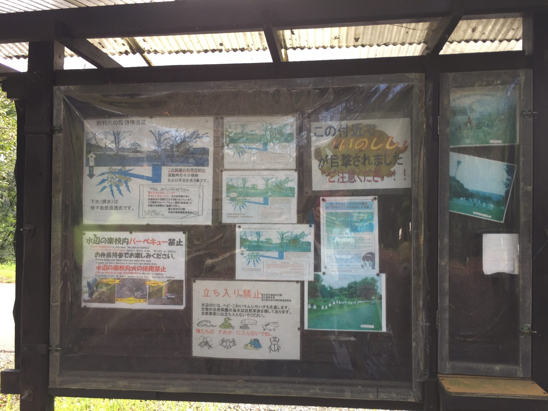 イノシシや、水辺の草むらには蛇などが生息しているそうなのでご注意を。