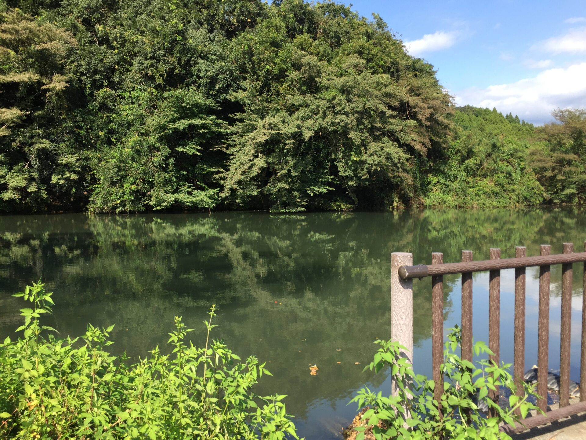 池ではたまに釣りをしている人もいます。