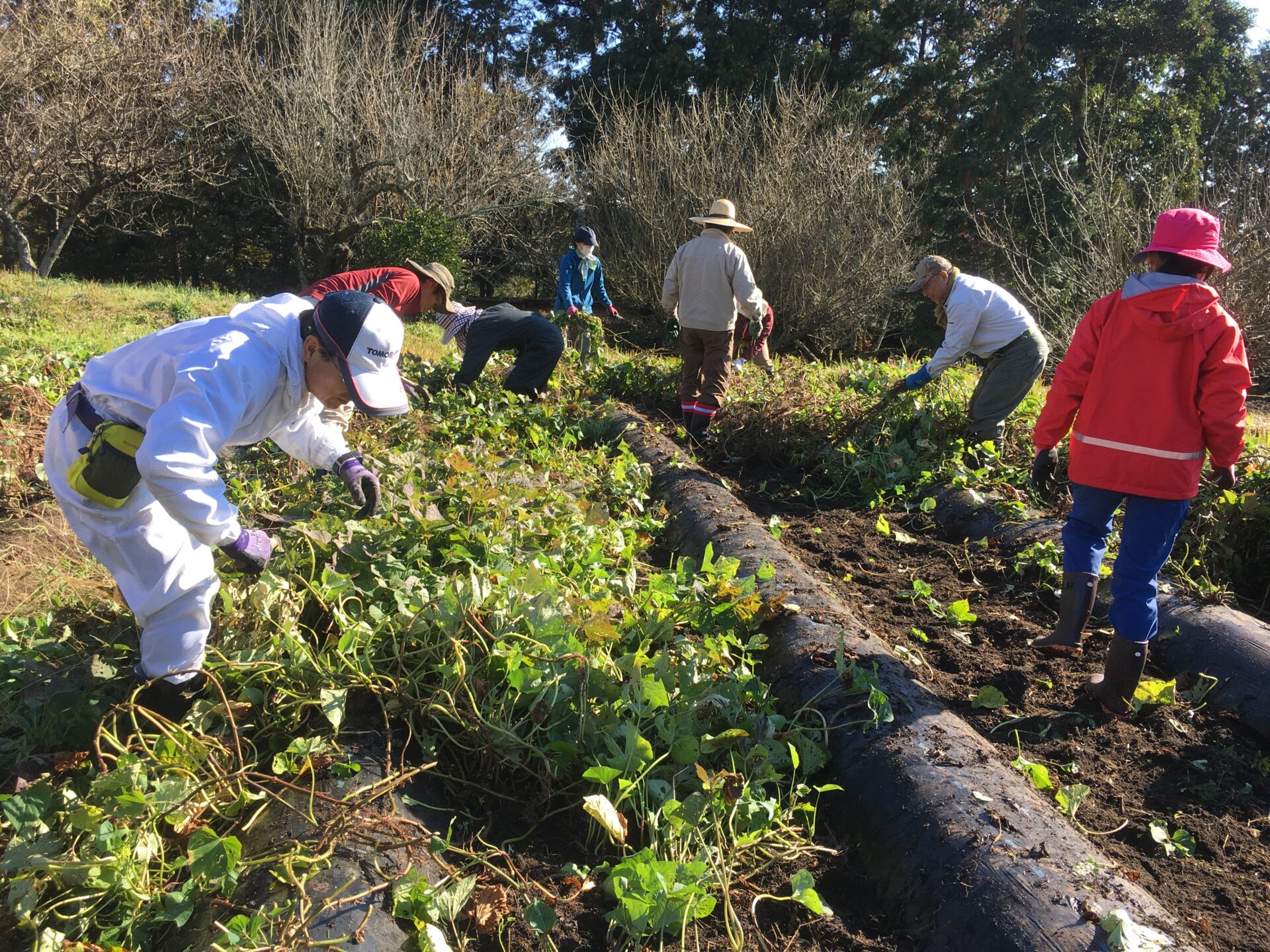 代表の平野さんから注意事項や作業内容などを聞き、すぐ隣にある畑に向かい作業開始です♪