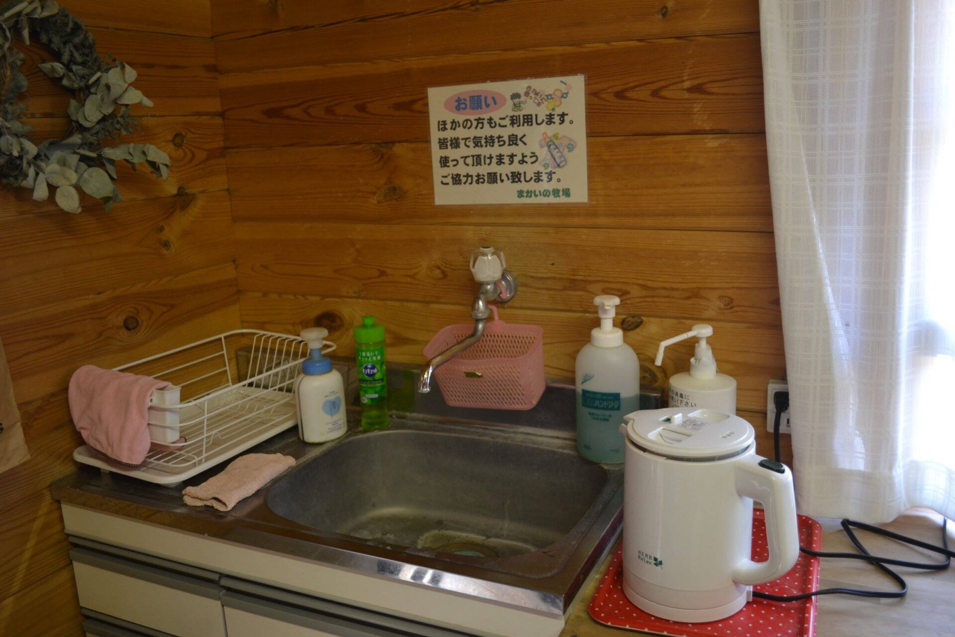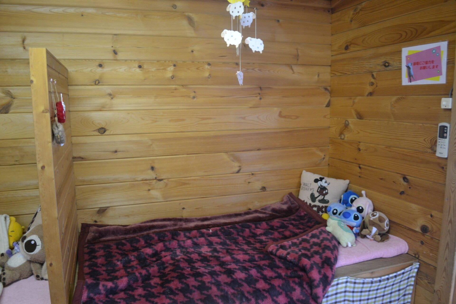 まるで絵本に出てきそうなかわいらしい小屋の中に、ベビーベッドや電気ケトルなどがあり、授乳やおむつ交換が可能です。