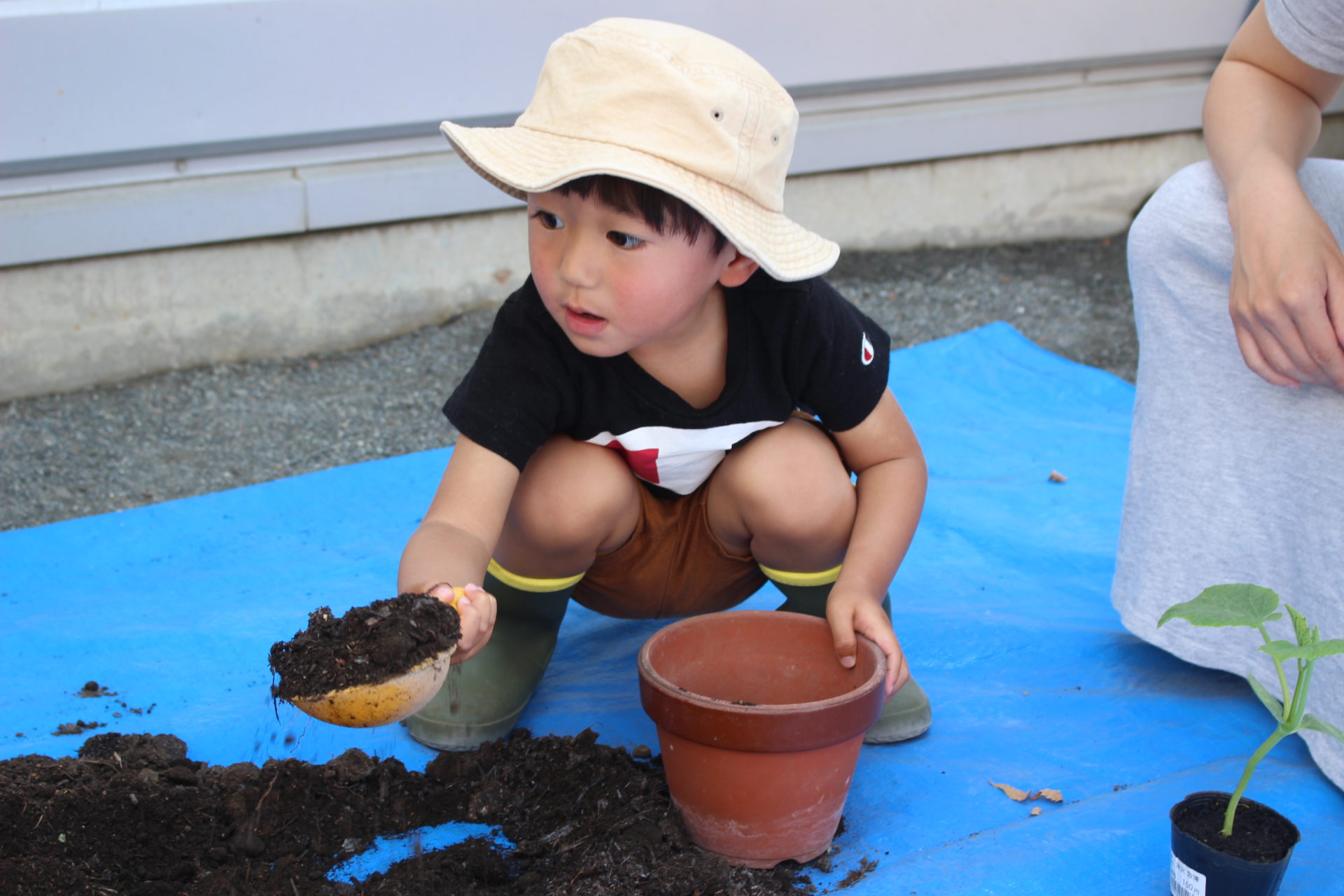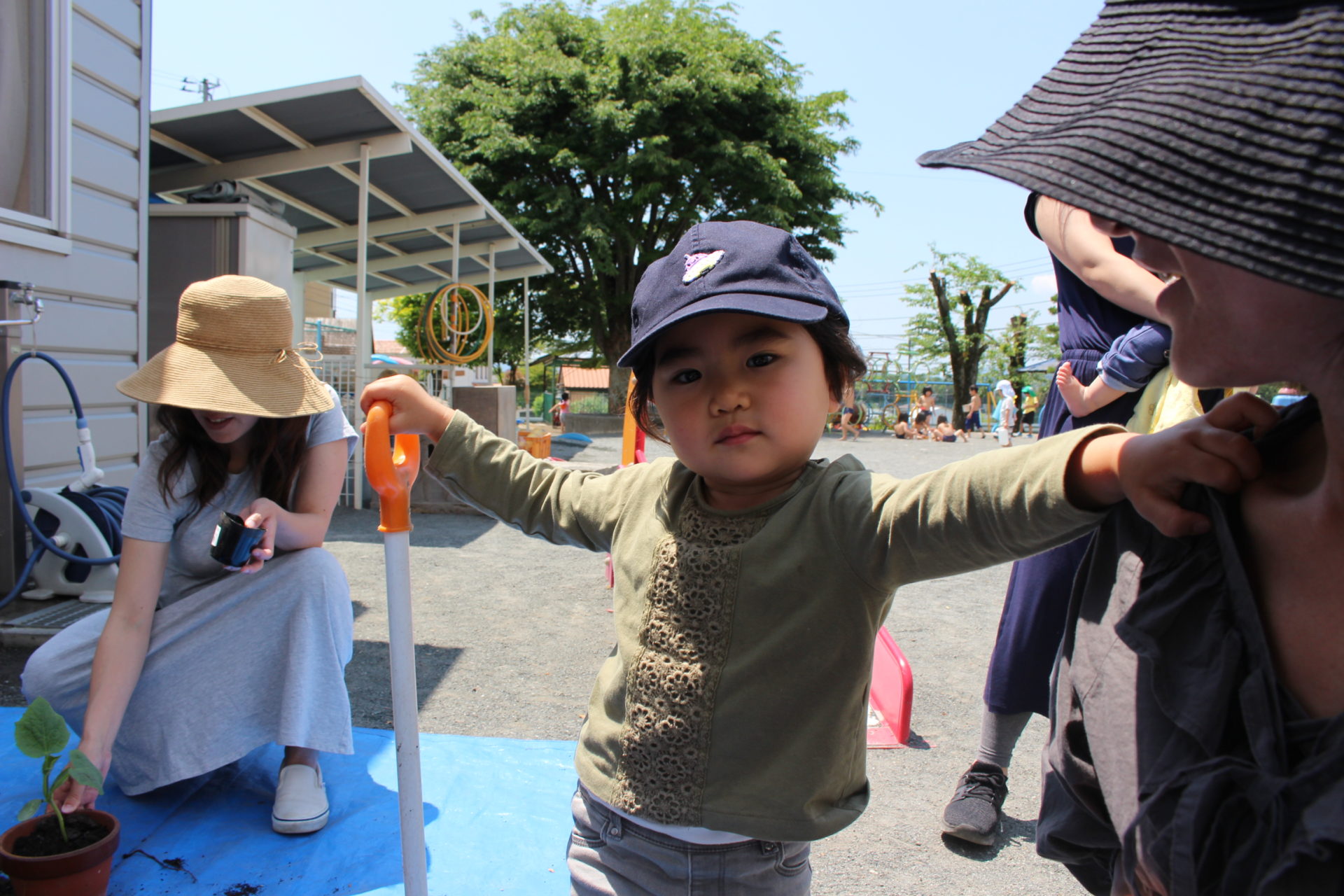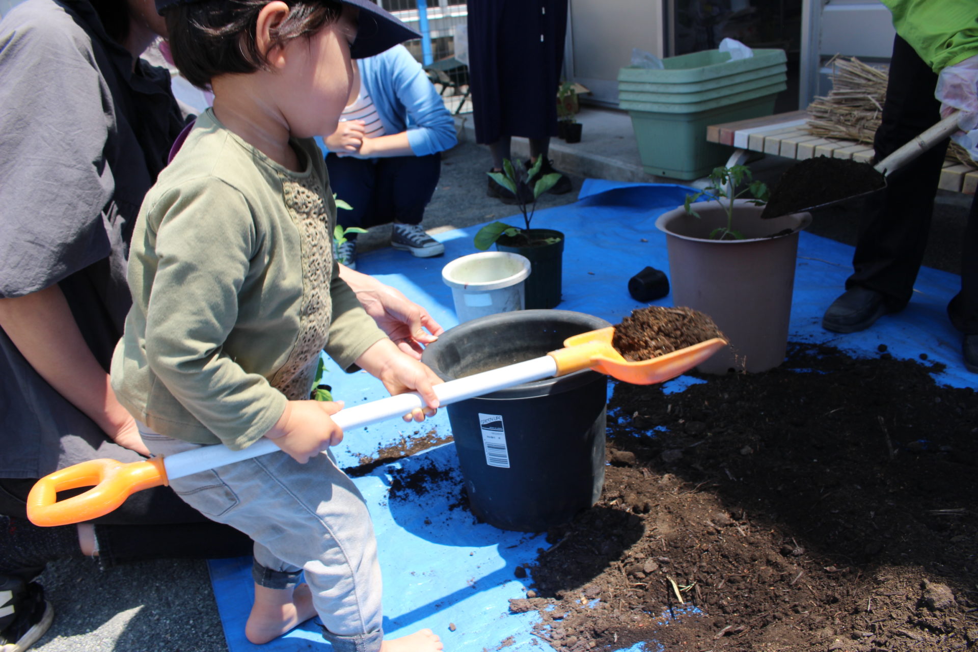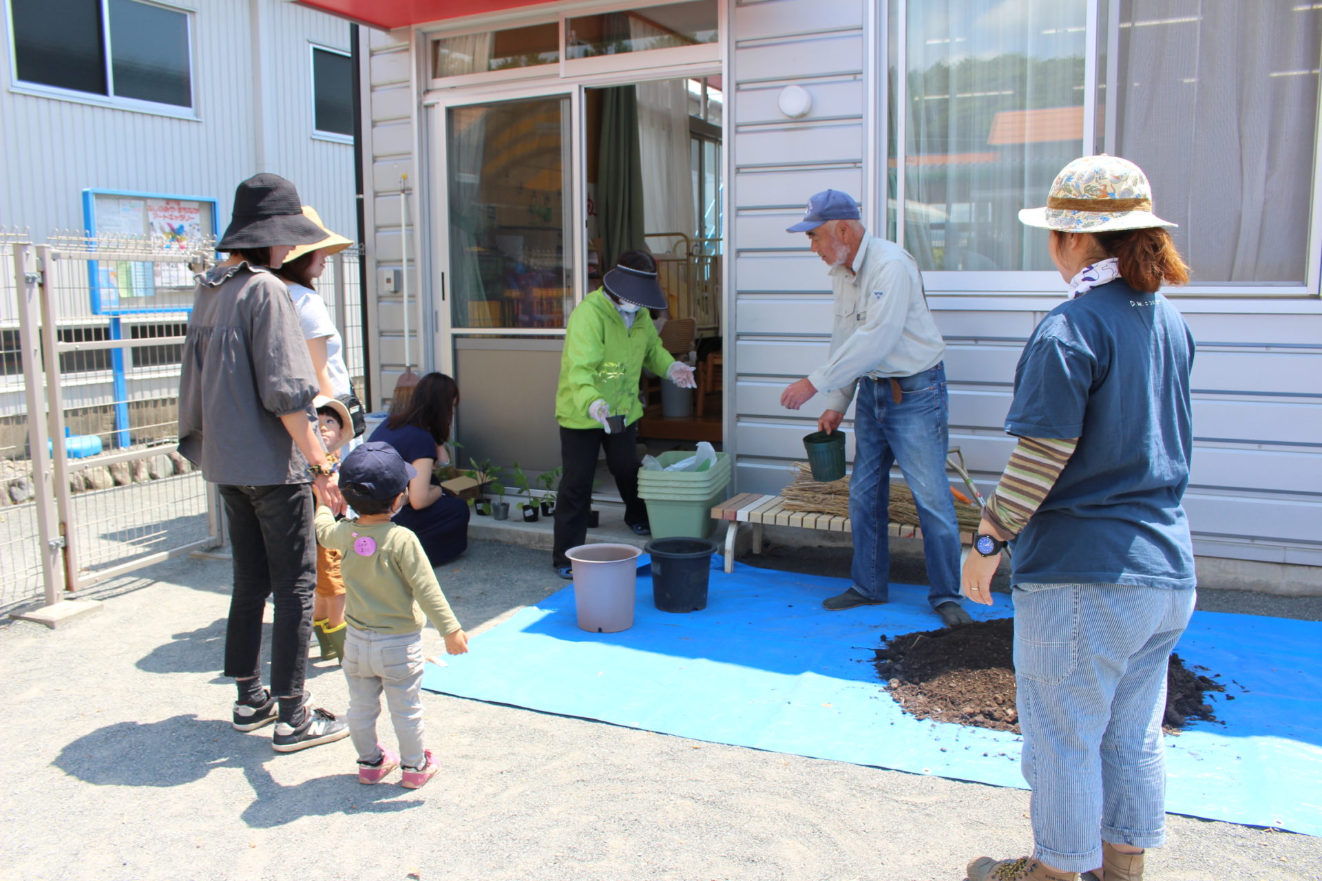 お邪魔したこの日は「苗植え」の日で、外神あけぼの保育園の園長さんに植物の話を聞いたあと、