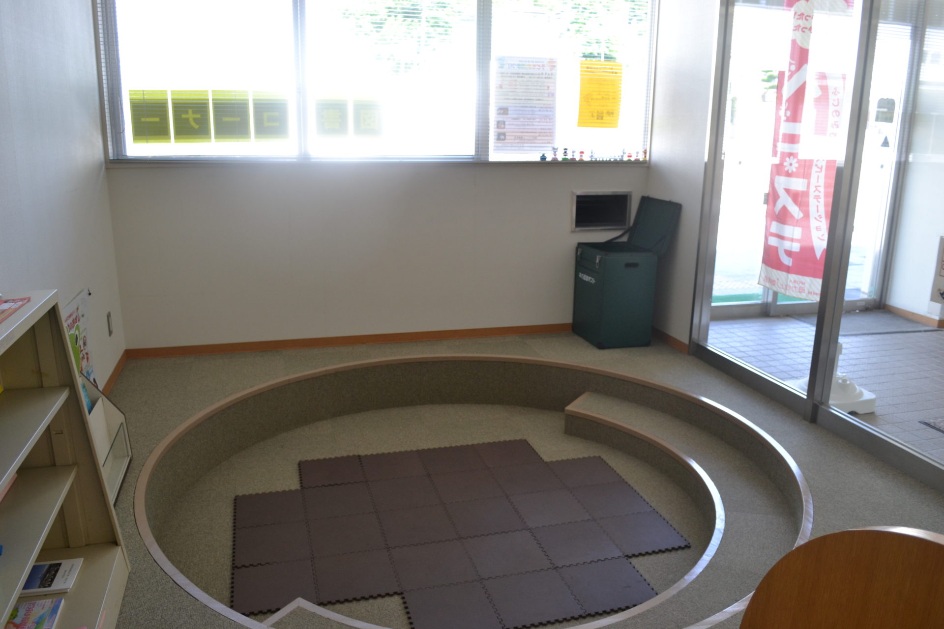 入って左側がこどもふれあい広場、右側が公民館の図書コーナーになっています。