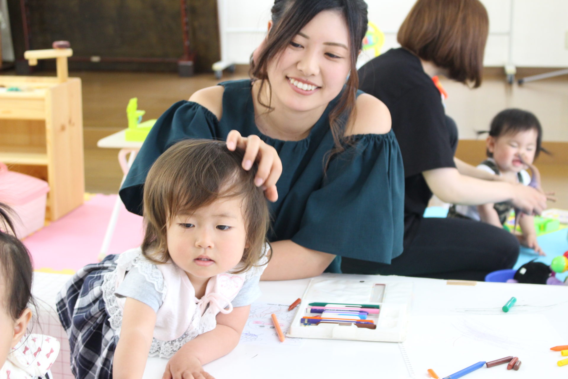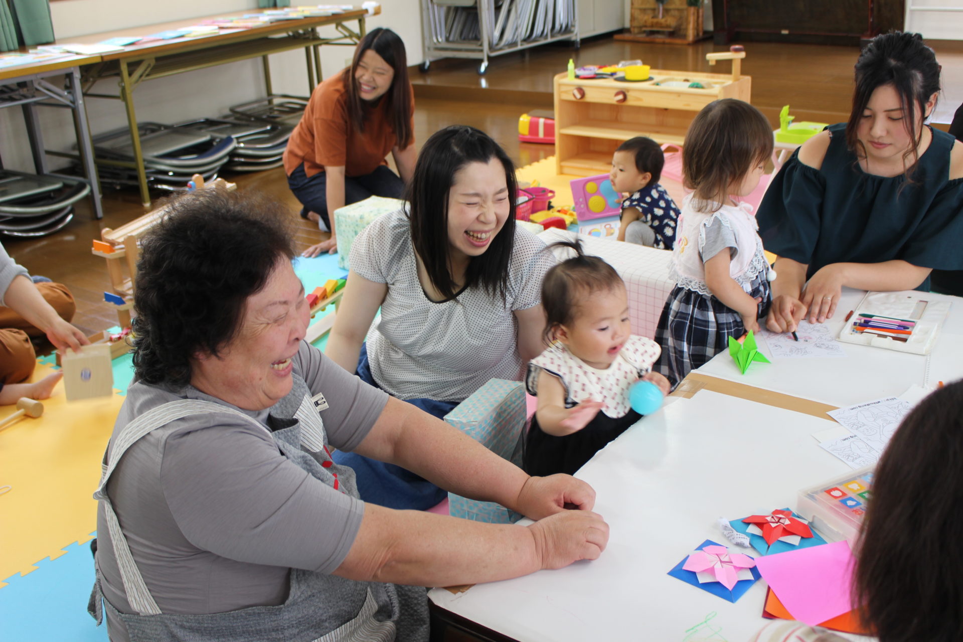 動き回る子どももいれば、じっとテーブルで折り紙をして遊ぶ子どももいたり、それぞれの子どものやりたいことに寄り添って見守ってくださっている雰囲気が印象的でした。